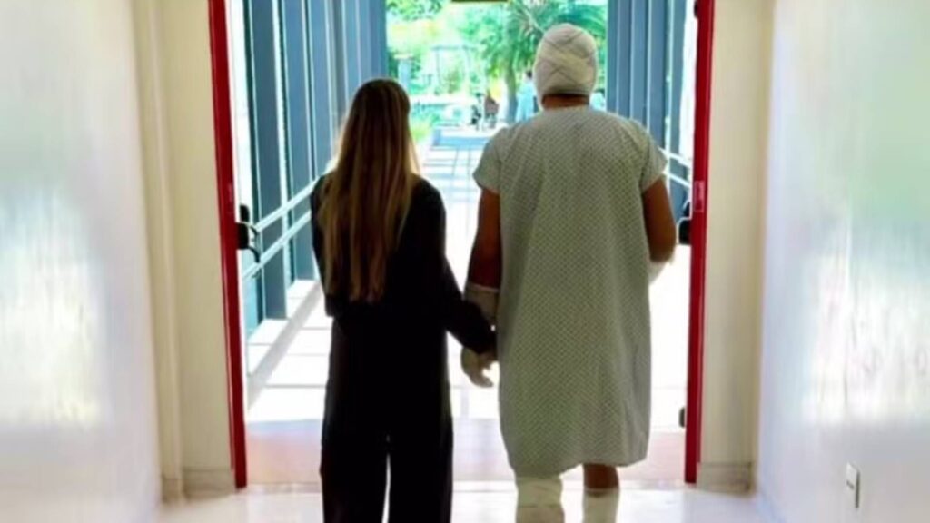Em foto postada nas redes sociais com uma legenda bíblica, o ex-jogador Lúcio apareceu de costas, ao lado da sua esposa, com a cabeça, braços e pernas enfaixados.