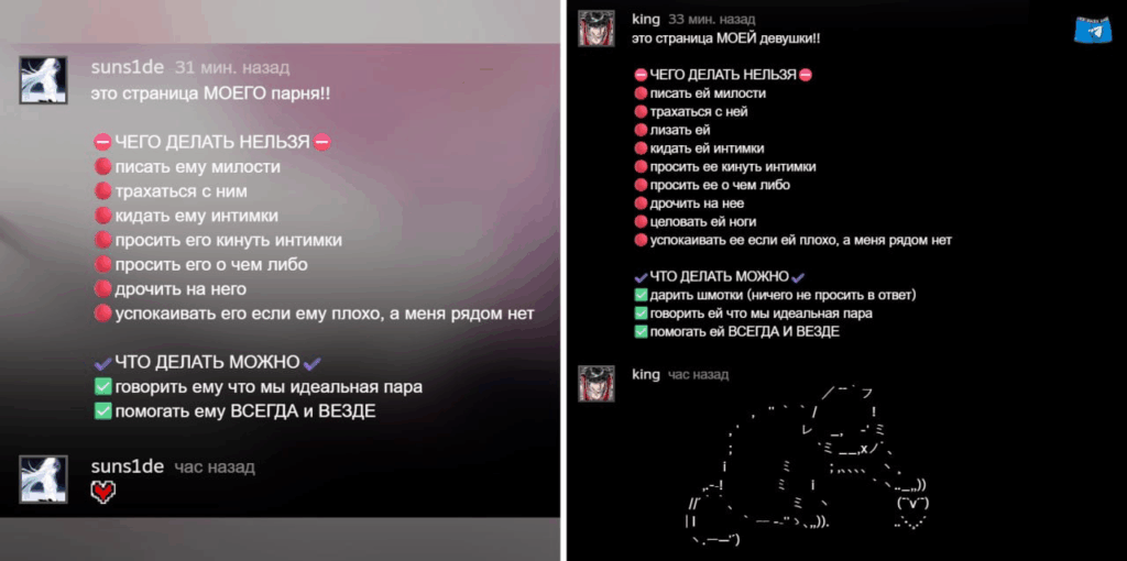 No perfil de suns1de, donk deixou uma mensagem afirmando que se trata da “minha namorada” e listando em tom brincalhão o que outras pessoas poderiam ou não fazer com ela, incluindo proibições exageradas e permissões curiosas.