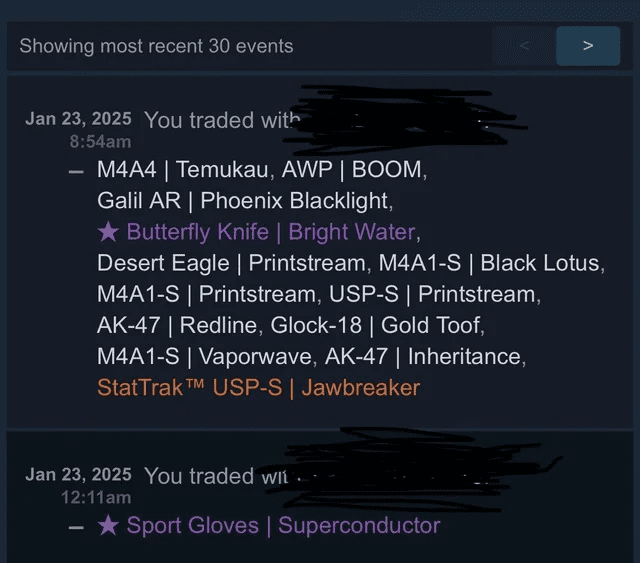 Entre os equipamentos do jogador está uma Butterfly Bright Water, avaliada em cerca de R$ 7 mil. Entretanto, muitas outras skins foram colocadas à venda para que ele conseguisse cumprir o objetivo. Veja a lista abaixo: