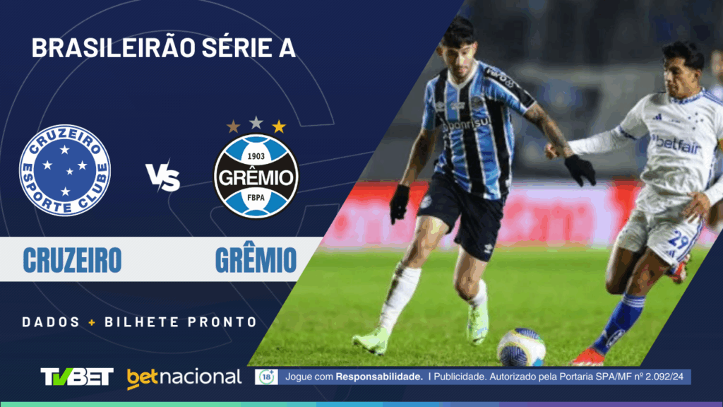 Para seguir na cola da liderança, Cruzeiro recebe Grêmio na retomada da Série A; veja oddsCom 24 pontos na tabela, Cruzeiro quer voltar a empatar com o Flamengo na briga pela liderança; Grêmio quer colar de vez no G-6 da competição